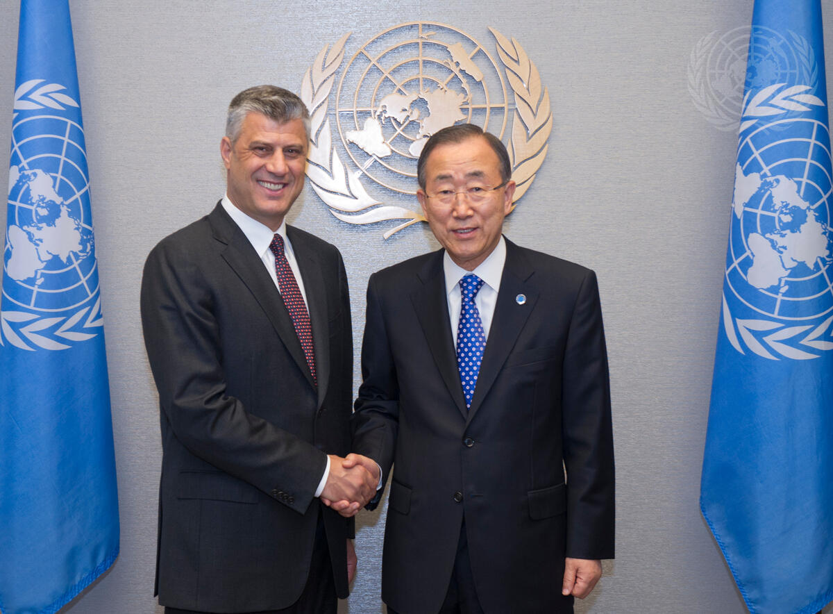 Secretary-General Ban Ki-moon (right) meets with Hashim Thaçi, Representative of the Kosovo authorities.