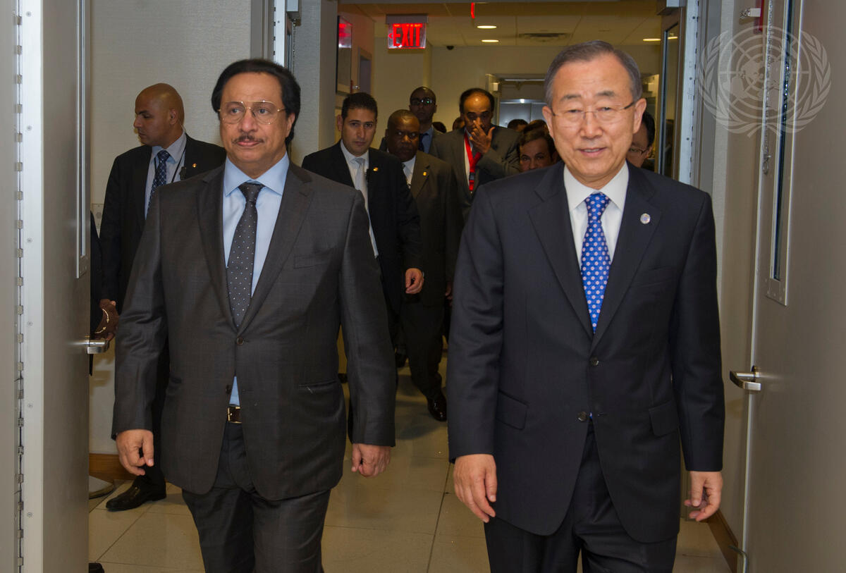 Secretary-General Ban Ki-moon (right) meets with Sheikh Jaber Al Mubarak Al Hamad Al Sabah, Prime Minister of the State of Kuwait.