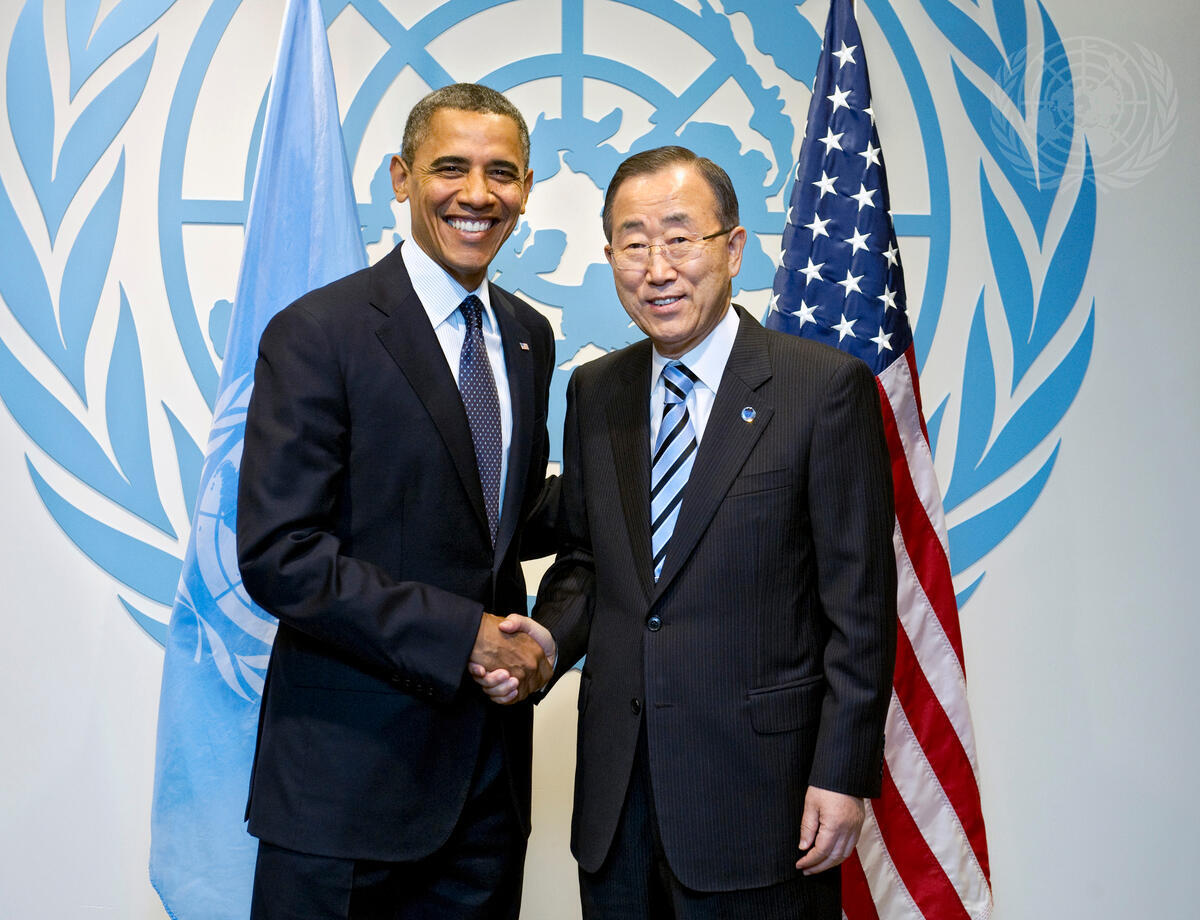 Secretary-General Ban Ki-moon meets with Barack Obama, President of the United States.