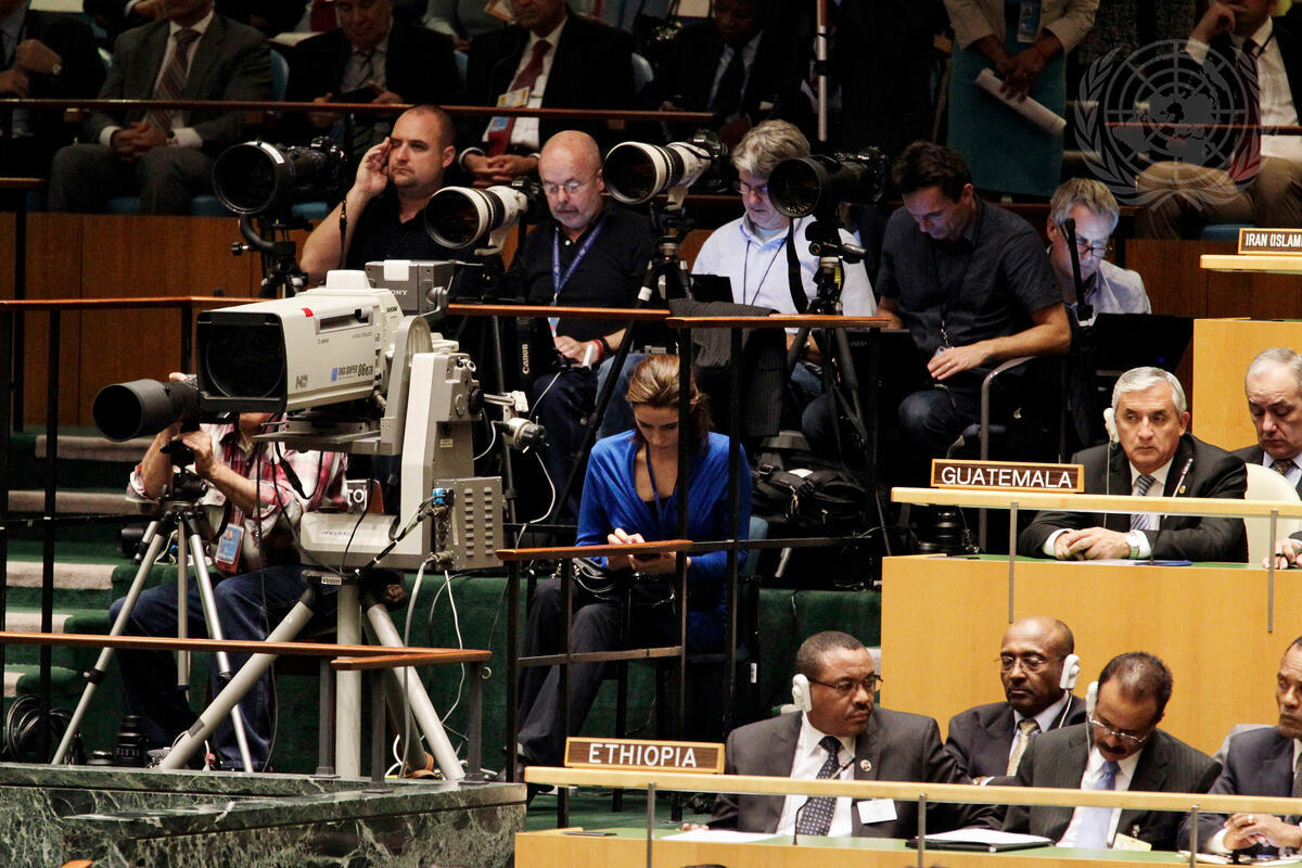 Media inside the General Assembly Hall during the opening of general debate of the Assembly’s sixty-seventh session. To the right sit the delegations of Ethiopia and Guatemala.