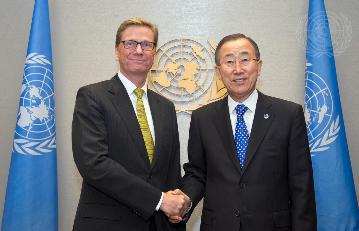 Secretary-General Ban Ki-moon (right) meets with Guido Westerwelle, Minister for Foreign Affairs of Germany.