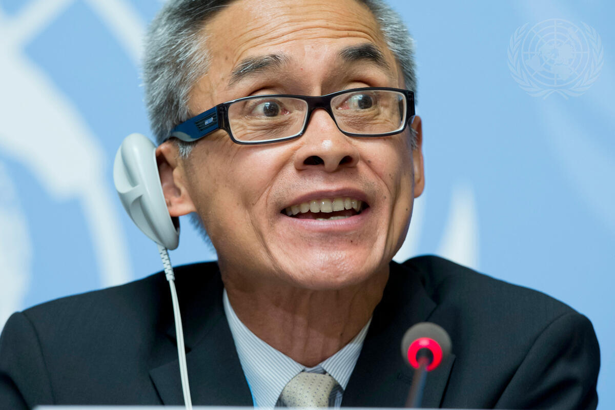 Vitit Muntarbhorn, Member of the Independent International Commission of Inquiry on Syria, speaks to the press during a briefing in Geneva today.