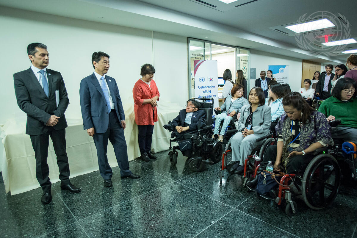 Participants at the unveiling ceremony of the UN Accessibility Centre, which enables greater participation of persons with disabilities in the intergovernmental processes at the world body. Those pictured include Movses Abelian (left), Assistant Secretary-General for General Assembly and Conference Management; and Oh Joon (second from left), Permanent Representative of the Republic of Korea to the United Nations. The event was co-sponsored by the UN Department of General Assembly and Conference Management (DGACM) and the Permanent Mission of the republic of Korea.