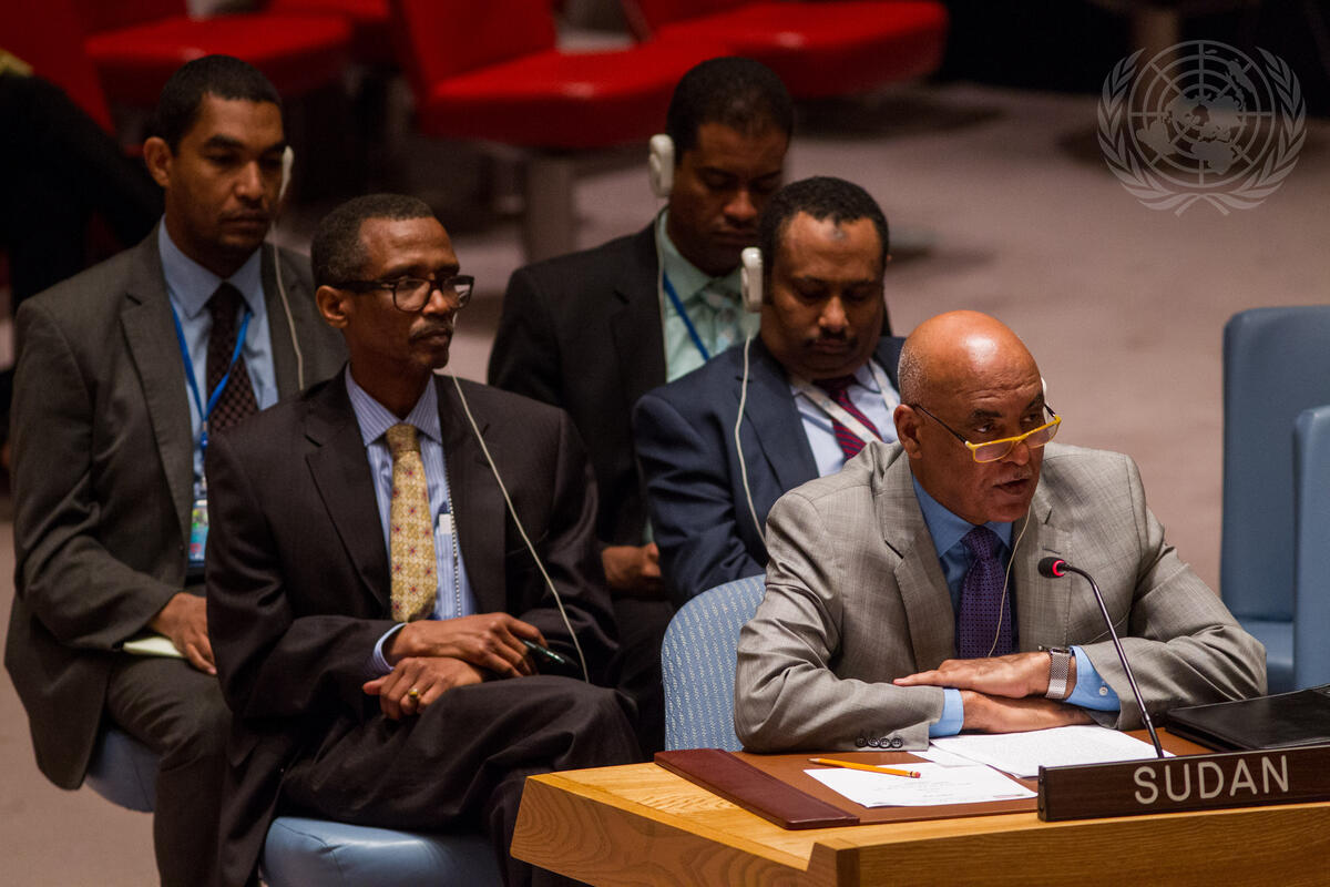 Omer Dahab Fadul Mohamed, Permanent Representative of the Republic of the Sudan to the UN, addresses the Security Council meeting on the situation in the Darfur region of his country.
