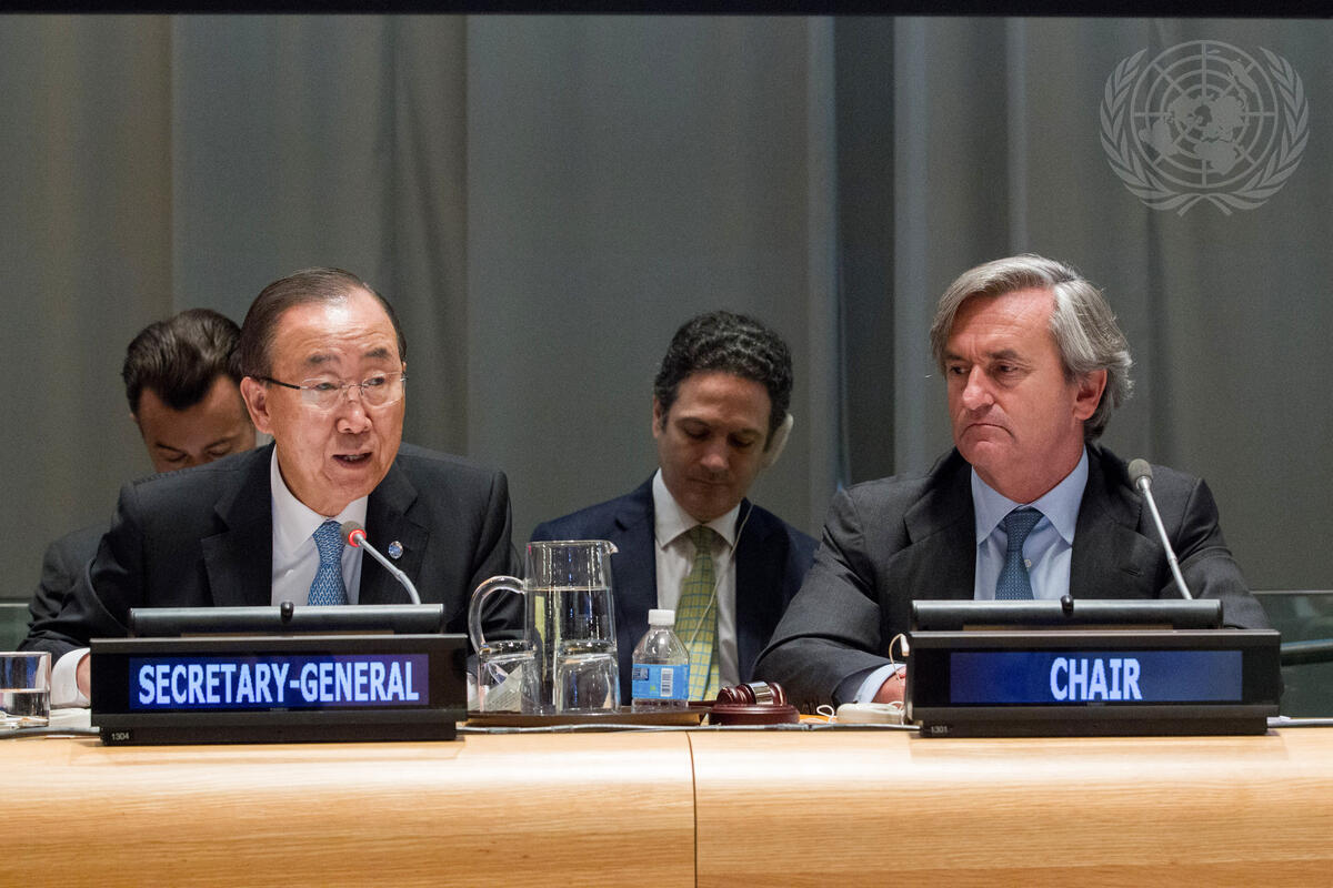 Caption Description Secretary-General Ban Ki-moon (left) addresses the general debate and formal the open consultations of the Security Council Committee on the non-proliferation of weapons of mass destruction, established by resolution 1540 (2004). At his side is Román Oyarzun Marchesi, Permanent of Representative of Spain to the UN and Chair of the 1540 Committee.