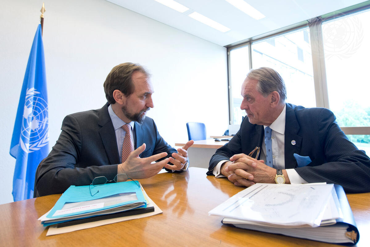 Deputy Secretary-General Jan Eliasson (right) meets with with Zeid Ra'ad Al Hussein, UN High Commissioner for Human Rights, during opening day of the thirty-second session of the Human Right Council.