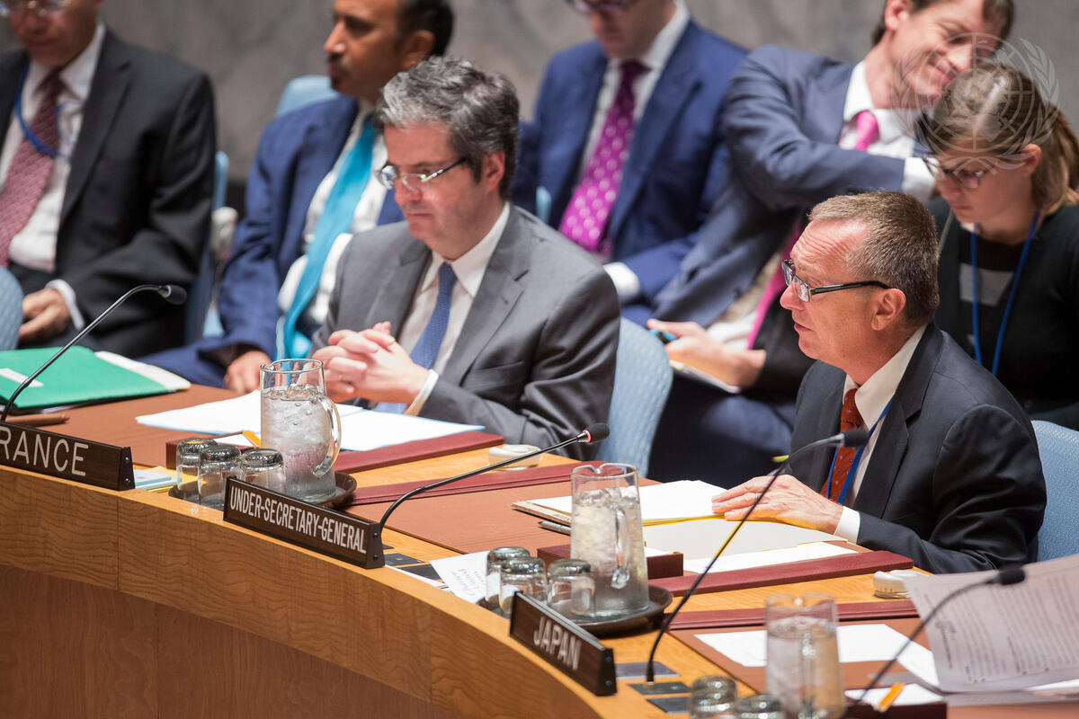 Jeffrey Feltman, Under-Secretary-General for Political Affairs, briefs the Security Council at today's meeting on threats to international peace and security caused by terrorist acts.