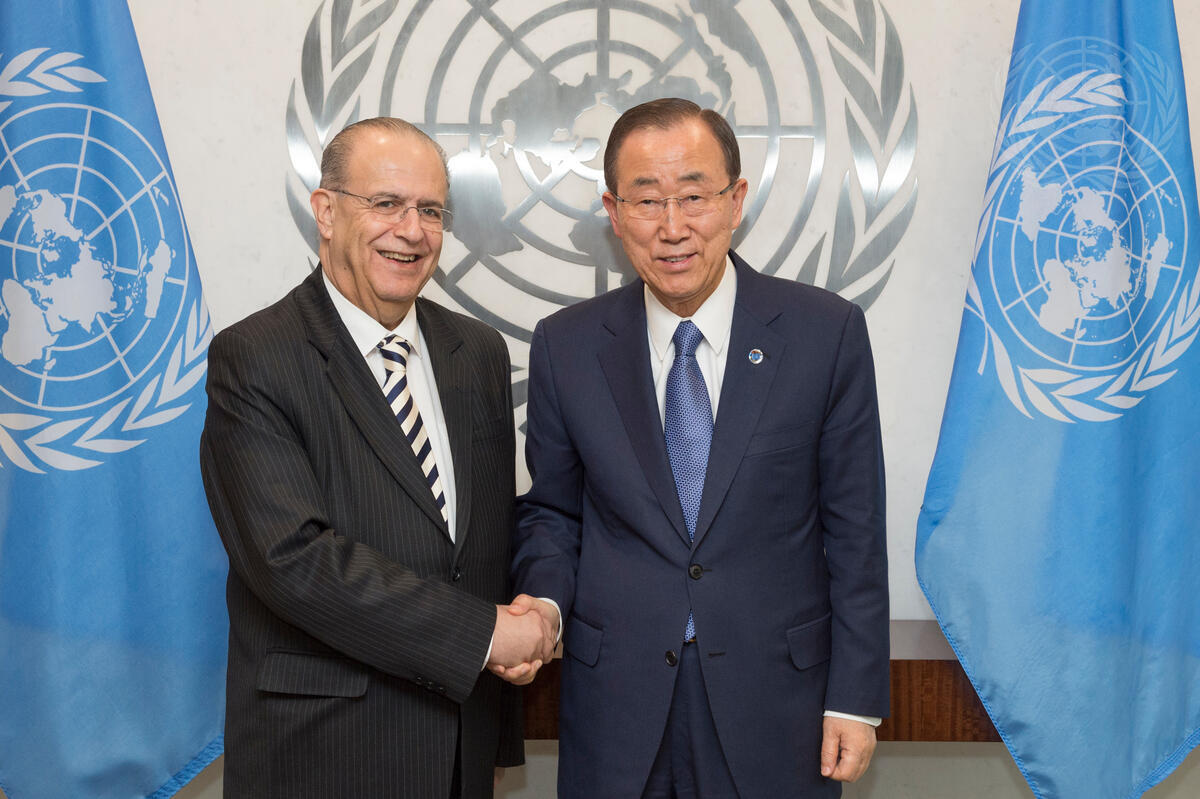 Secretary-General Ban Ki-moon (right) meets with Ioannis Kasoulides, Minister for Foreign Affairs of the Republic of Cyprus.