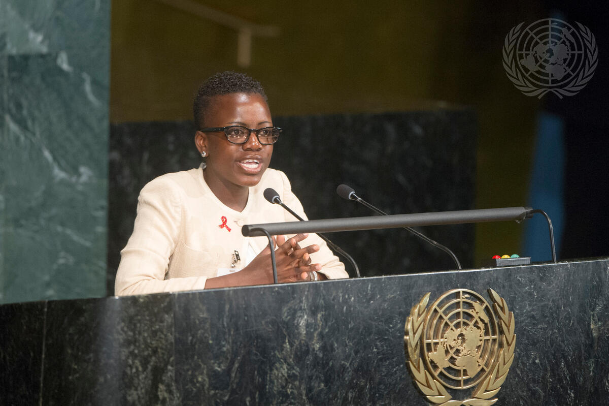 Loyce Maturu, a Zimbabwean living with AIDS since the age of 12 and an advocate for people living with HIV/AIDS, addresses the General Assembly High-level Meeting on HIV/AIDS.