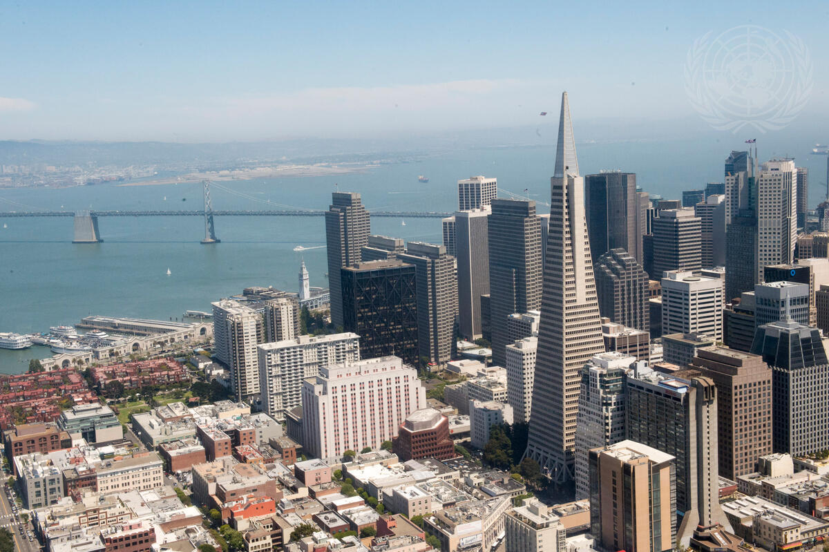 Aerial View of San Francisco, California during Secretary-General Ban Ki-moon's trip to Palo Alto to deliver a speech at Encina Hall of Stanford University in California entitled “The UN at 70: A conversation with UN Secretary-General Ban Ki-moon”.