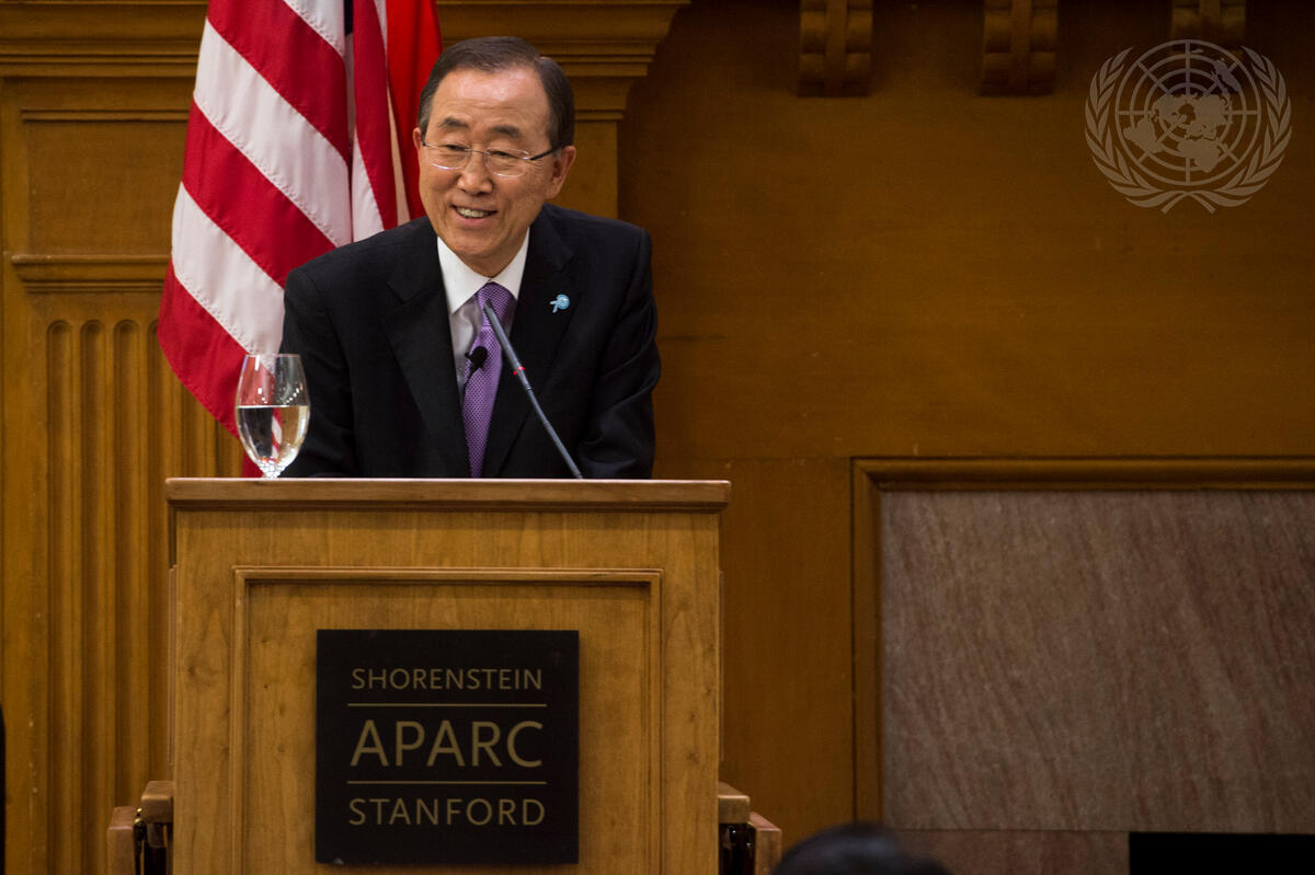 Secretary-General Ban Ki-moon delivers a speech at Encina Hall of Stanford University in California entitled “The UN at 70: A conversation with UN Secretary-General Ban Ki-moon”.