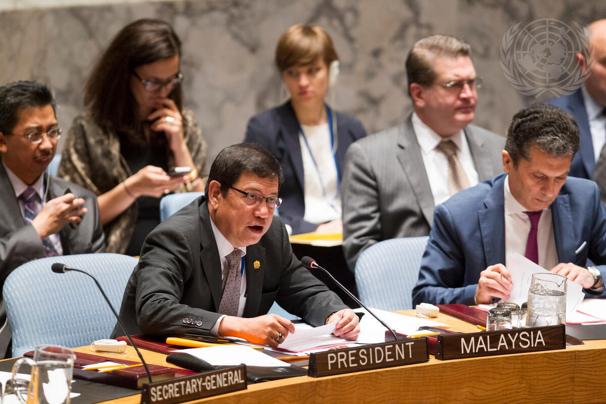 Ramlan Bin Ibrahim (front left), Permanent Representative of Malaysia to the UN and President of the Council for June, chairs the meeting.