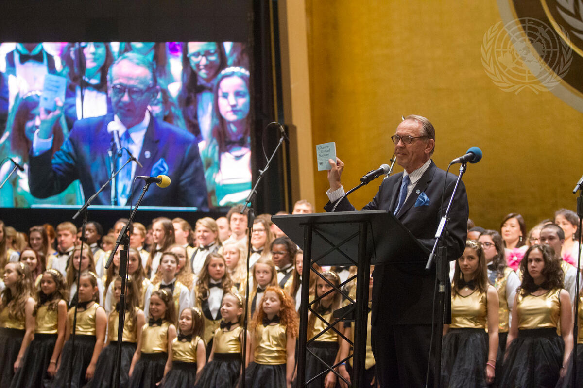 Deputy Secretary-General Jan Eliasson delivers remarks at the Rhythms of One World International Choral Festival Concert, a global event celebrating the 70th anniversary of the signing of the UN Charter ""We the Peoples"". The event was organized by the Permanent Mission of Romania and the Friendship Ambassadors Foundation, Inc. under the patronage of UNESCO in cooperation with the United Nations Department of Public Information.