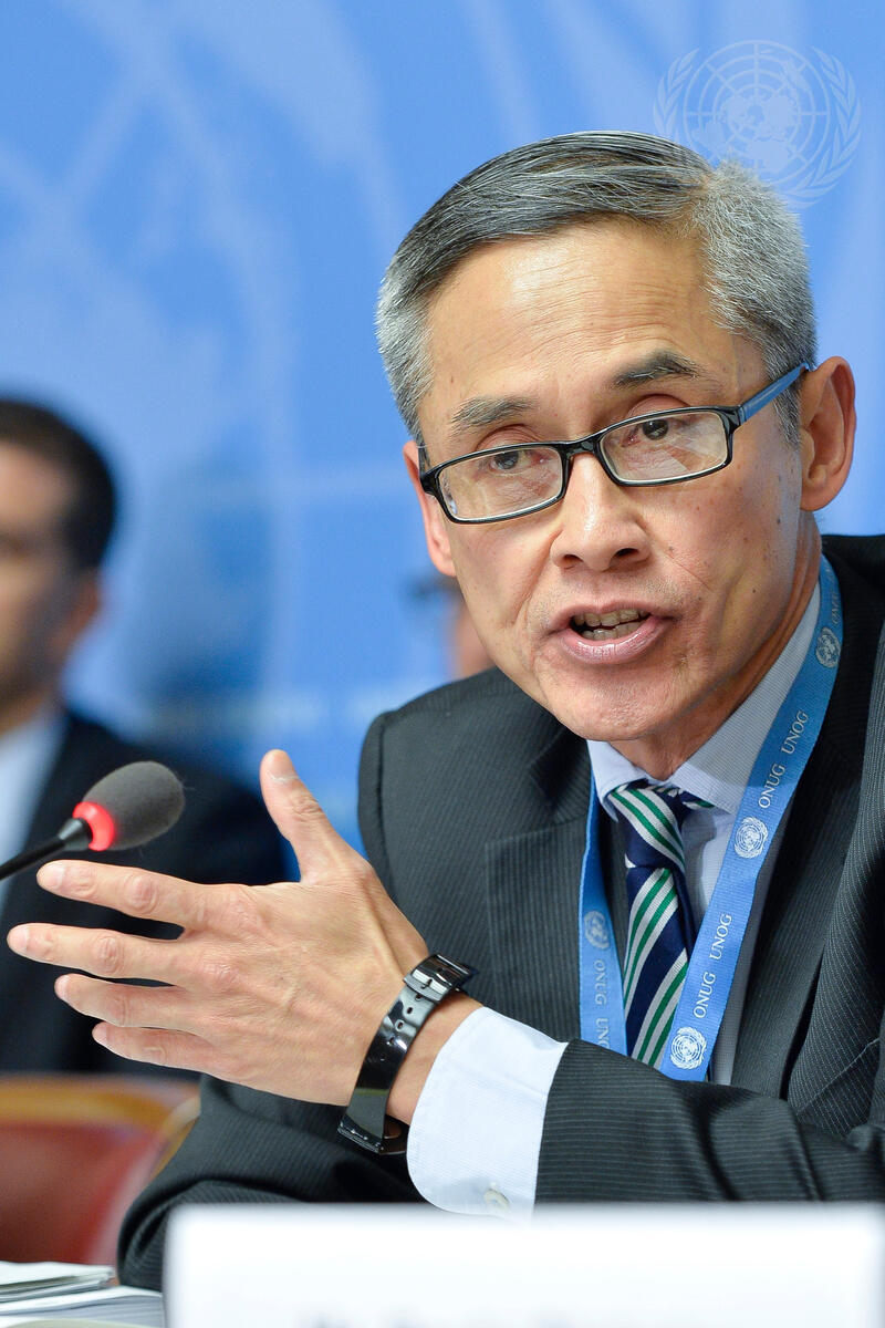 Vitit Muntarbhorn, member of the Independent International Commission of Inquiry on Syria, addresses a press conference, following the Commission’s update to the Human Rights Council detailing recent findings on serious violations of human rights and international humanitarian law in the Syria conflict.