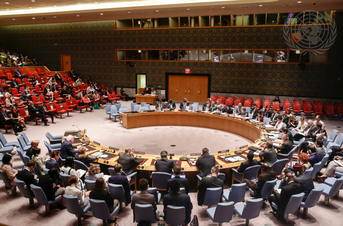 A wide view of the Security Council meeting on the Middle East situation, including the Palestinian question.