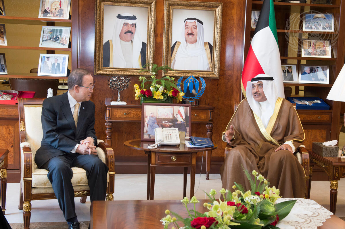 Secretary-General Ban Ki-moon (left) meets with Sheikh Sabah Khalid Al Hamad Al Sabah, First Deputy Prime Minister and Minister for Foreign Affairs of the State of Kuwait.
