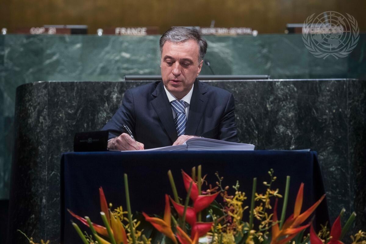 Filip Vujanovic, President of Montenegro, signs the Paris Agreement.