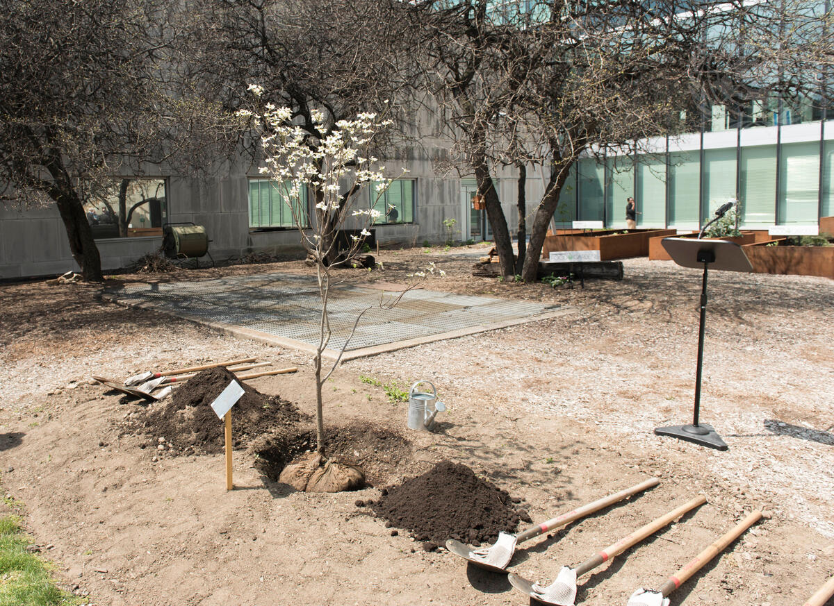 A view of the garden at the United Nations where a tree planting ceremony is being held on International Mother Earth Day under theme "Trees for the Earth". The special event coincides with the signing ceremony for the Paris Agreement on Climate Change.