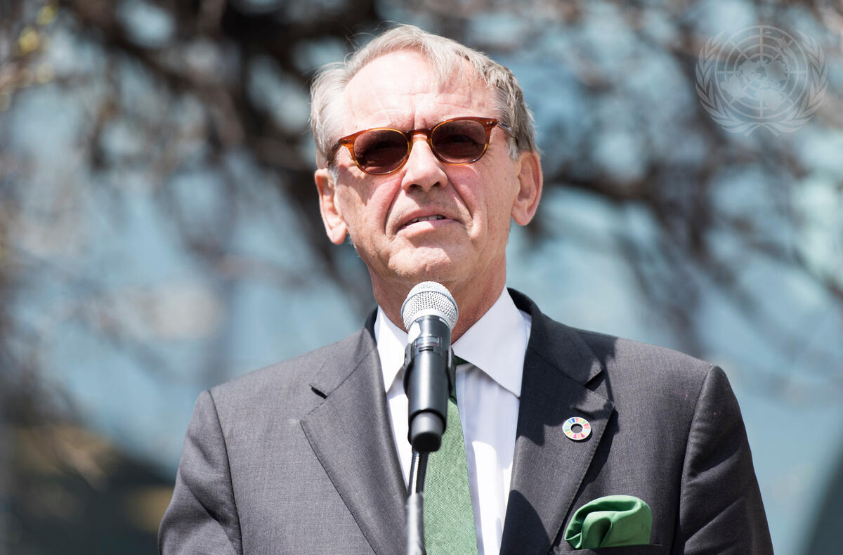 Deputy Secretary-General Jan Eliasson spekas at a tree planting ceremony being held on International Mother Earth Day under theme ""Trees for the Earth"". The special event, held in the garden at the United Nations, coincides with the signing ceremony for the Paris Agreement on Climate Change.