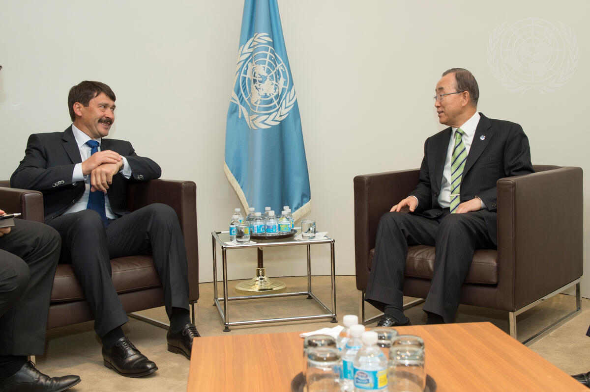 Secretary-General Ban Ki-moon (right) meets with János Áder, President of Hungary,