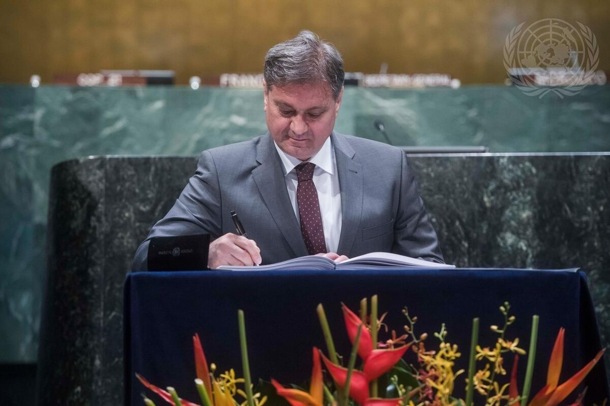 Denis Zvizdic, Chairman of the Council of Ministers of Bosnia and Herzegovina, signs the Paris Agreement.