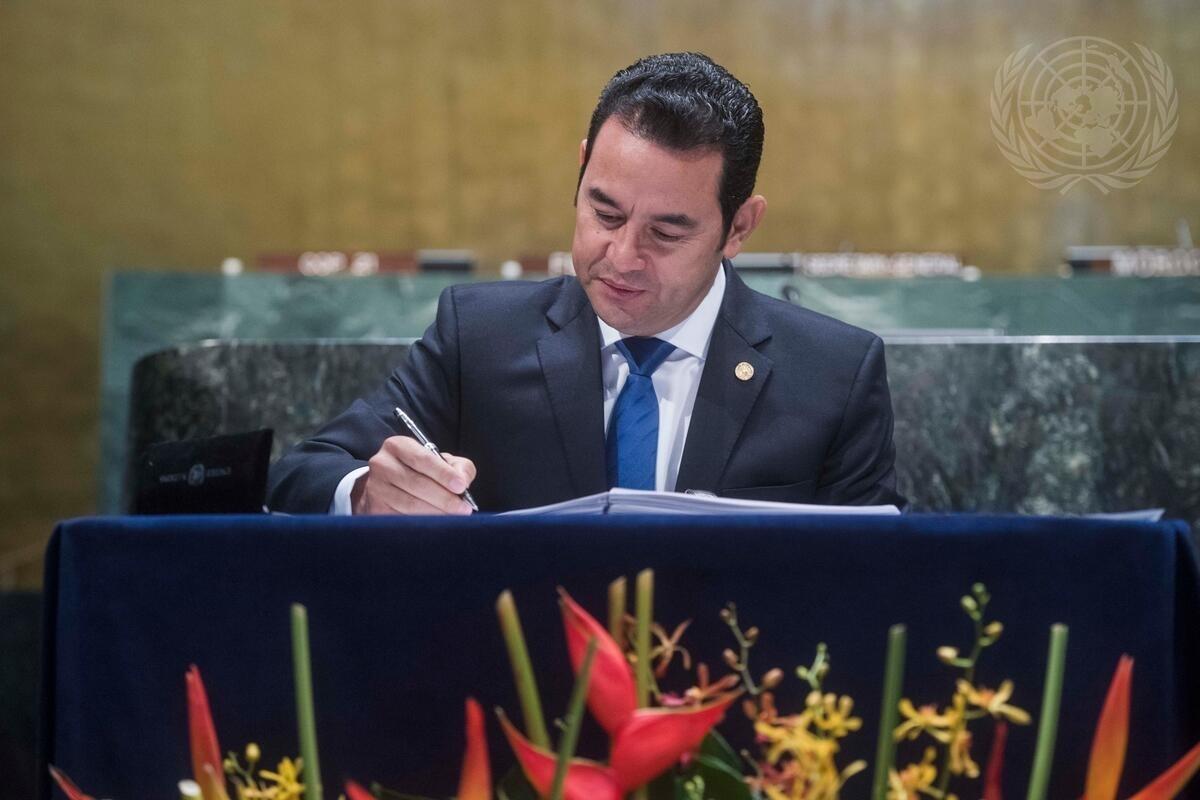Jimmy Morales, President of Guatemala, signs the Paris Agreement.