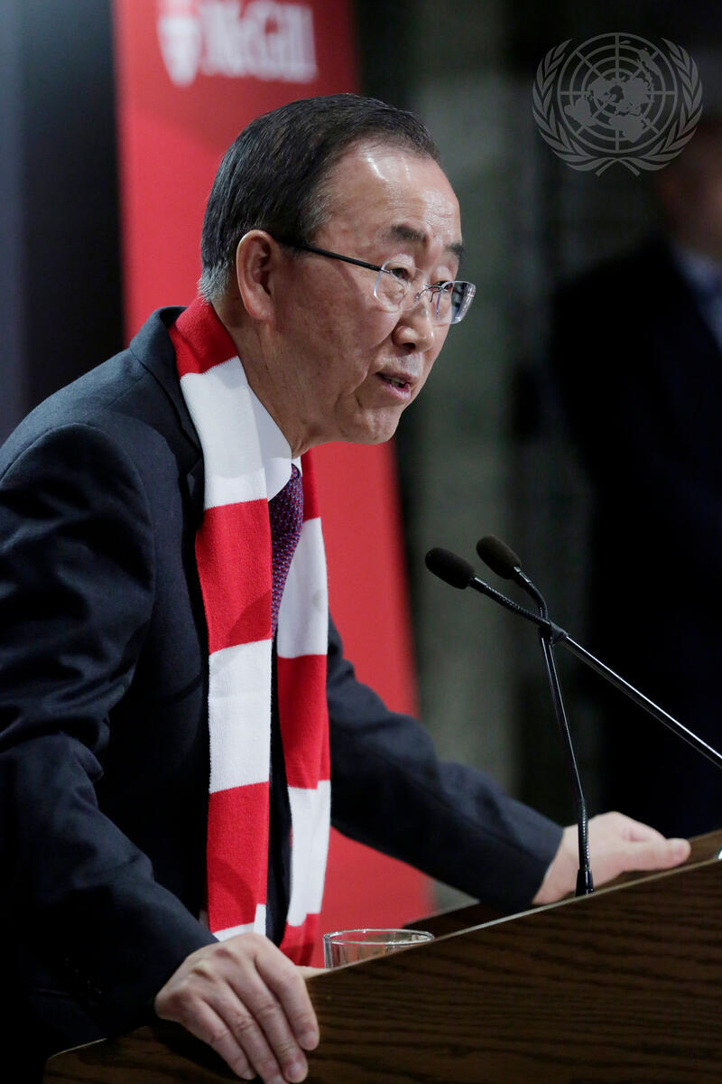 Secretary-General Ban Ki-moon delivers a keynote address at McGilll University in Montréal, Canada, on the theme, ""Threats and Opportunities: The power of young people to shape a new future”.