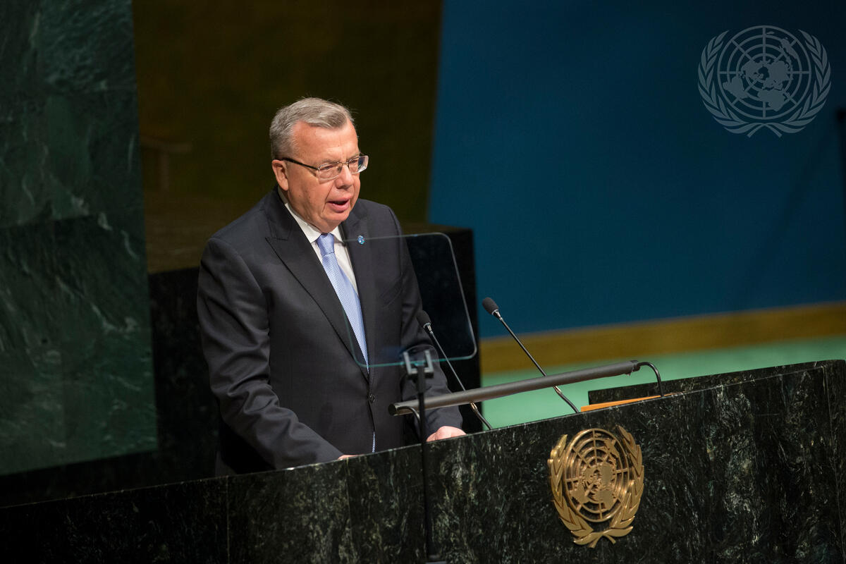 Yury Fedotov, Executive Director of the UN Office on Drugs and Crime (UNODC), addresses the thirtieth special session of the General Assembly on the World Drug Problem.
