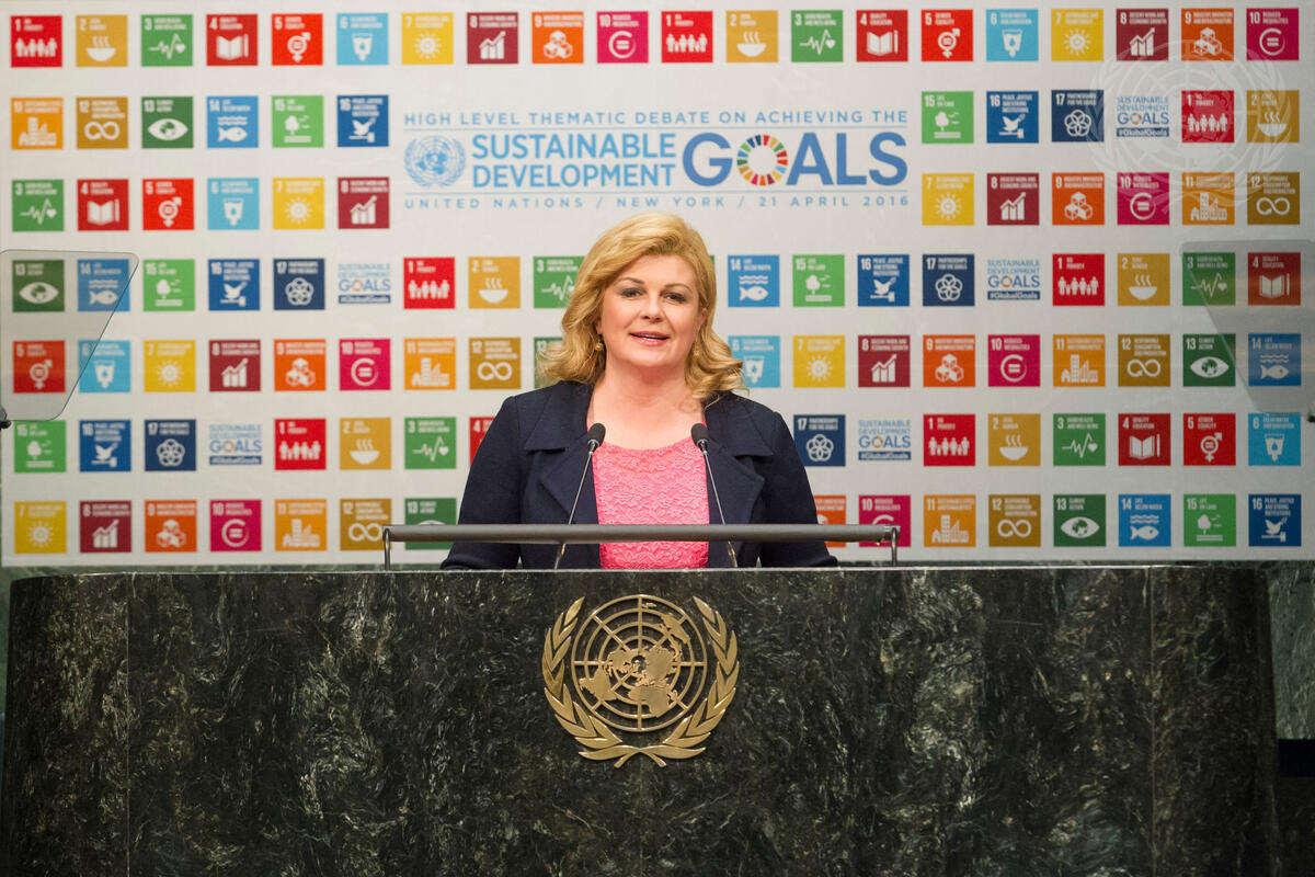 Kolinda Grabar Kitarovic, President of the Republic of Croatia, addresses the General Assembly High-level Thematic Debate on Achieving the Sustainable Development Goals.