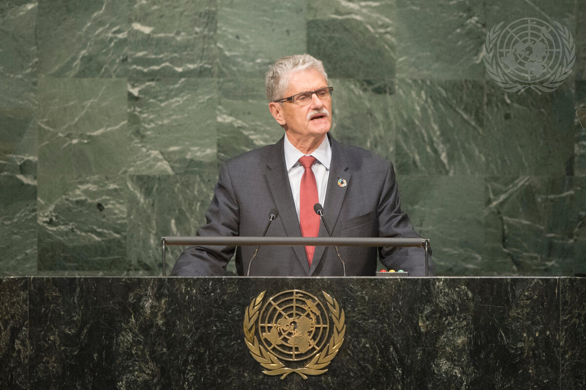 Mogens Lykketoft, President of the seventieth session of the General Assembly, addresses the opening segment of the signature ceremony.