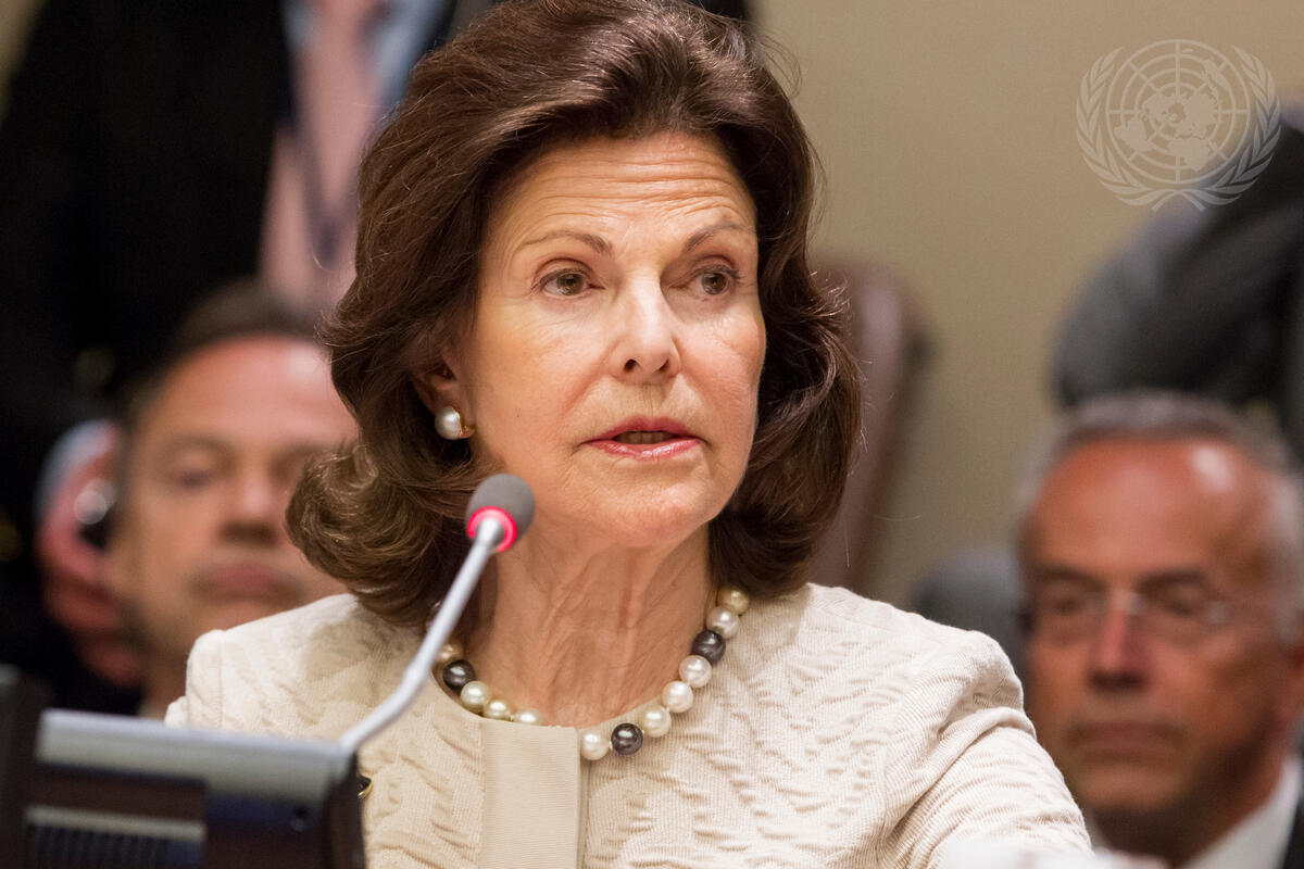 Queen Silvia of Sweden addresses a special event on how evidence-based drug prevention can be an effective investment in the wellbeing of children and youth. The event was by the Governments of France and Sweden with the UN Office on Drugs and Crime (UNODC) and the World Health Organization (WHO).
