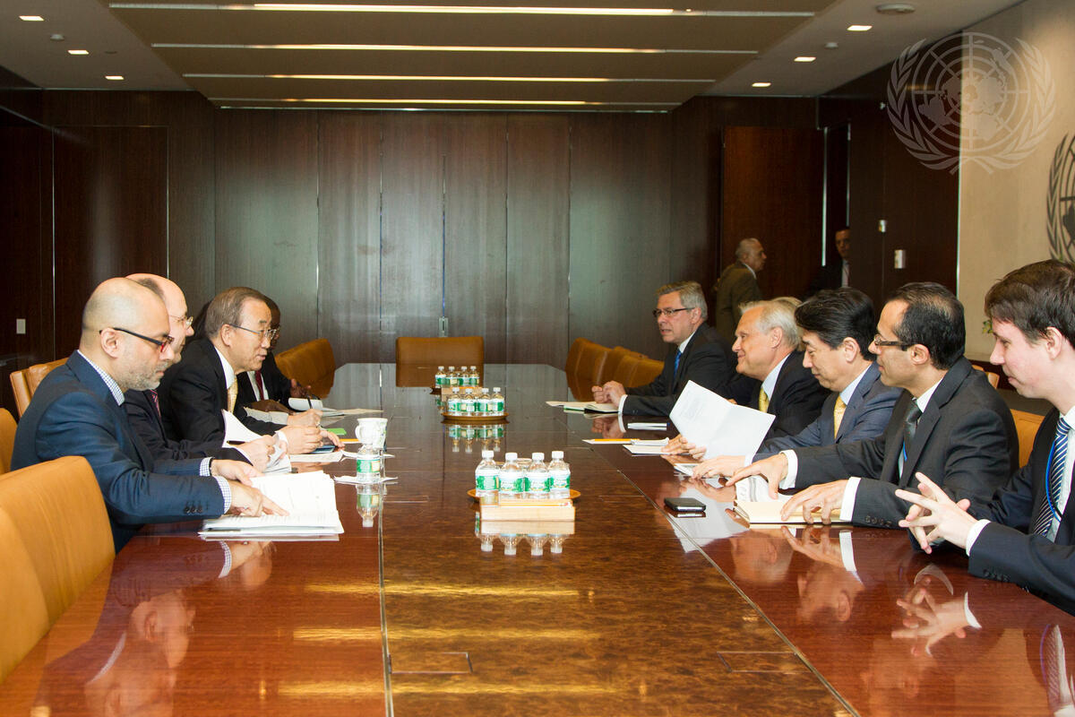 Secretary-General Ban Ki-moon (third from left) meets with Martin Sajdik (fourth from right), Permanent Representative of Austria to the UN and President of the Economic and Social Council (ECOSOC), along with Vice-Presidents of the Council (from top, on right): Vladimir Drobnjak, Permanent Representative of Croatia to the UN; Oh Joon, Permanent Representative of the Republic of Korea; Mohamed Khaled Khiari, Permanent Representative of Tunisia.