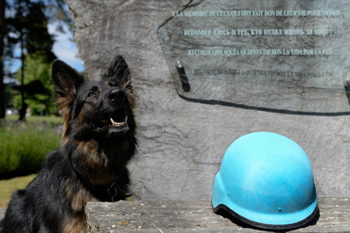 Zana (left), a member of UNOG’s explosives detection canine (K-9) team, during the event.