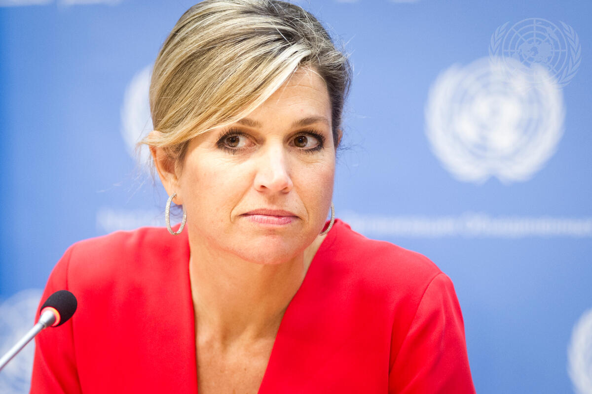 Queen Maxima of the Netherlands, the Secretary-General’s Special Advocate for Inclusive Finance for Development, addresses a press conference.