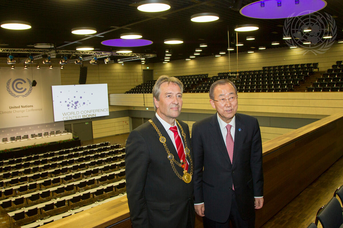 Secretary-General Ban Ki-moon took part in the official inauguration of the extension building of the World Conference Centre Bonn. Mr. Ban (right) with Jürgen Nimptsch, Lord Mayor of the City of Bonn, on the occasion.