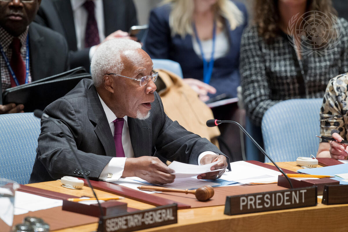 Ismael A. Gaspar Martins, Permanent Representative of the Republic of Angola to the UN and President of the Security Council for March, chairs the meeting.