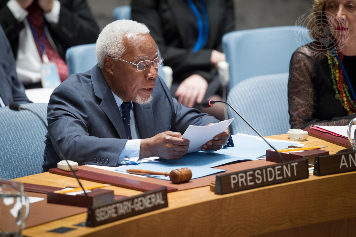 Sudan Ismael A. Gaspar Martins, Permanent Representative of the Republic of Angola to the UN and President of the Security Council for March, reads the presidential statement during the Council’s meeting.