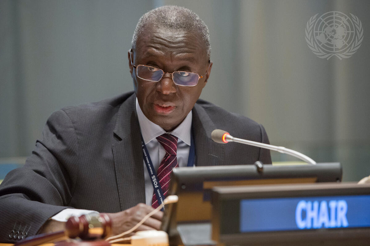 Fodé Seck, Permanent Representative of the Republic of Senegal to the UN and Chair of the General Assembly's Committee on the Exercise of the Inalienable Rights of the Palestinian People, addresses a meeting of the Committee.