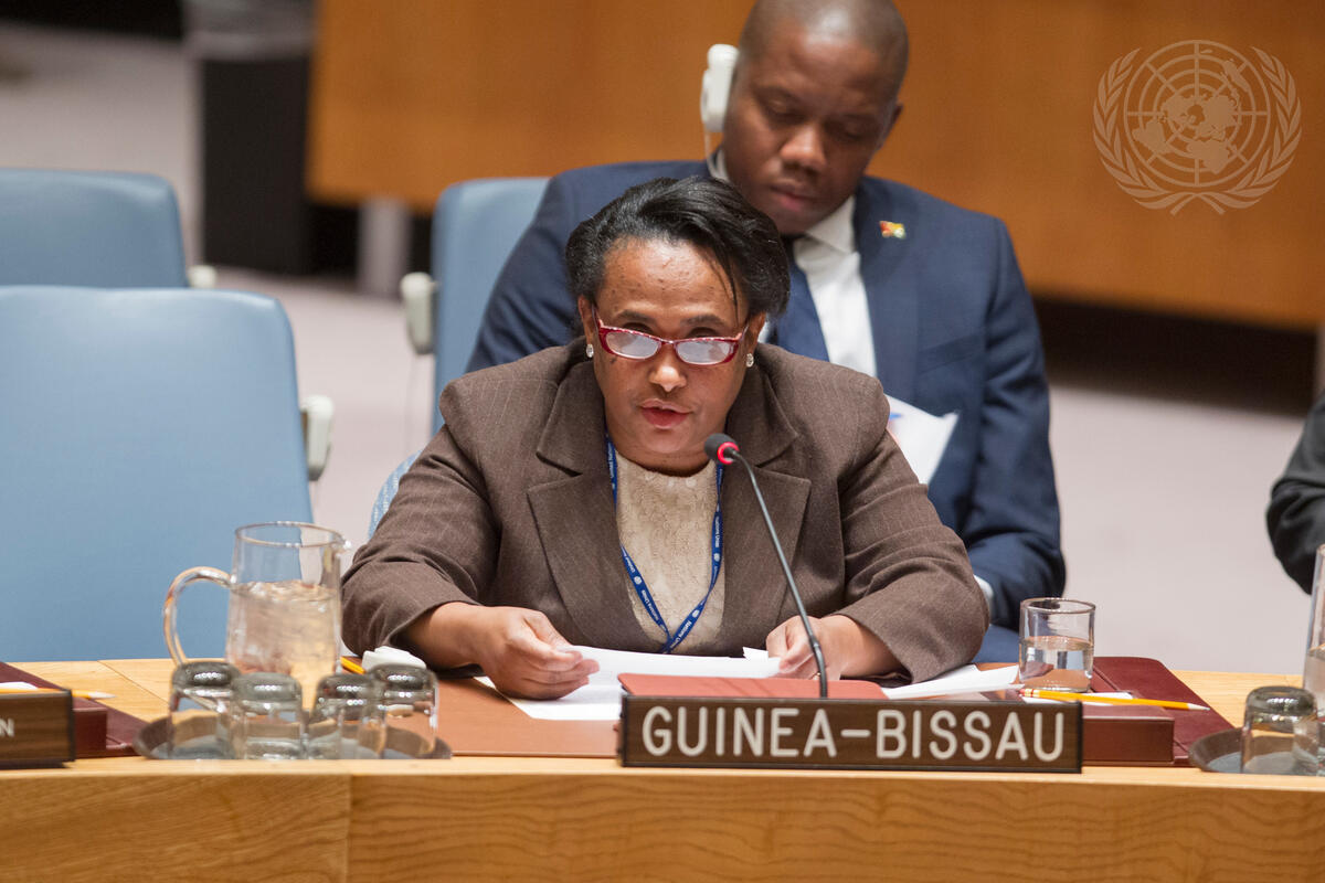 Maria Antonieta Pinto Lopes d’Alva, representative of Guinea-Bissau, briefs the Security Council on the situation in Guinea-Bissau and the activities of the United Nations Integrated Peacebuilding Office (UNIOGBIS) in Guinea-Bissau.