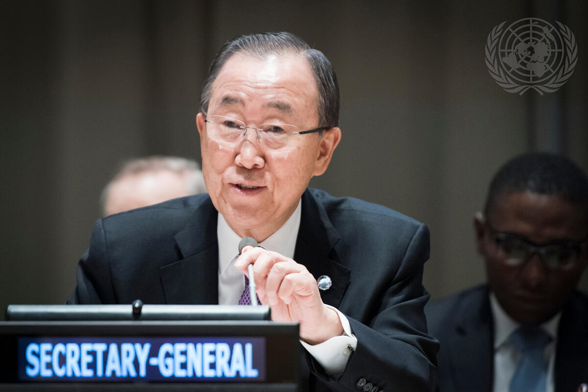 Secretary General Ban Ki-moon briefs member states on the 22 April 2016 High-level signing ceremony for the Paris Agreement (COP21).
