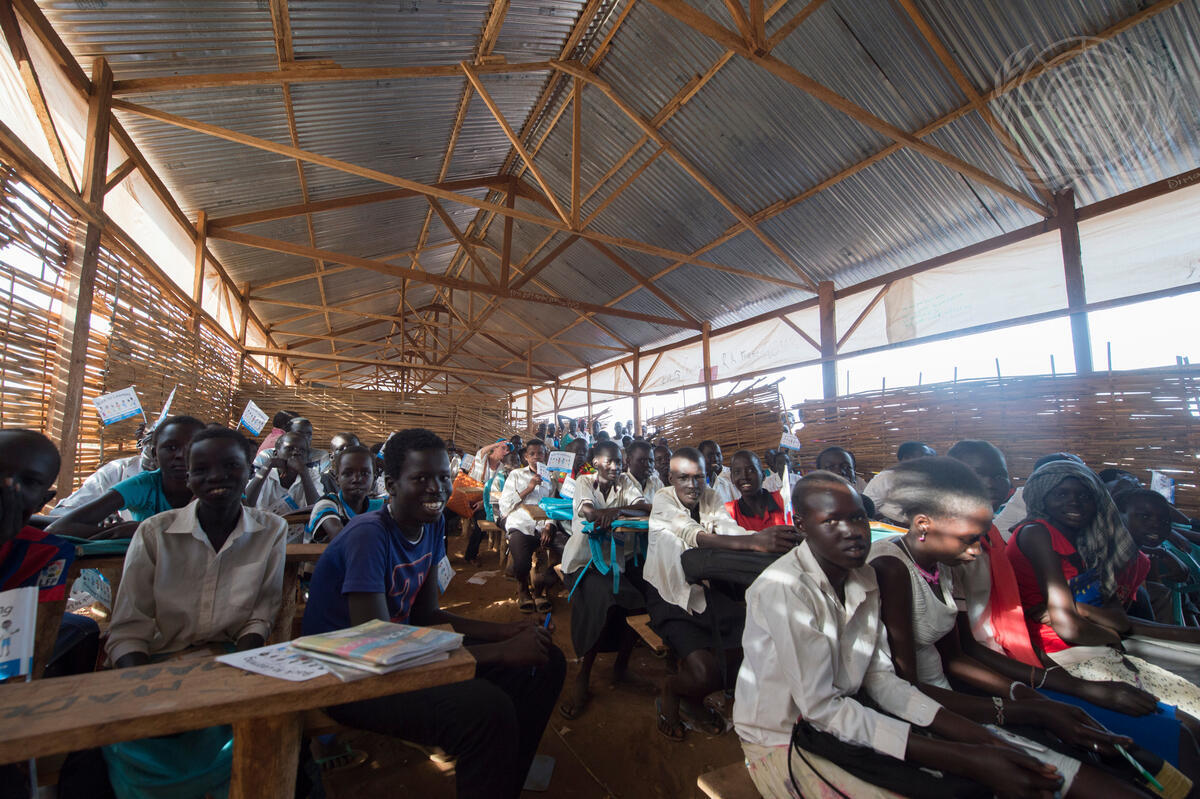 Young residents of Protection of Civilians site (PoC 3) in Juba, South Sudan, during Secretary-General Ban Ki-moon’s visit to the site.