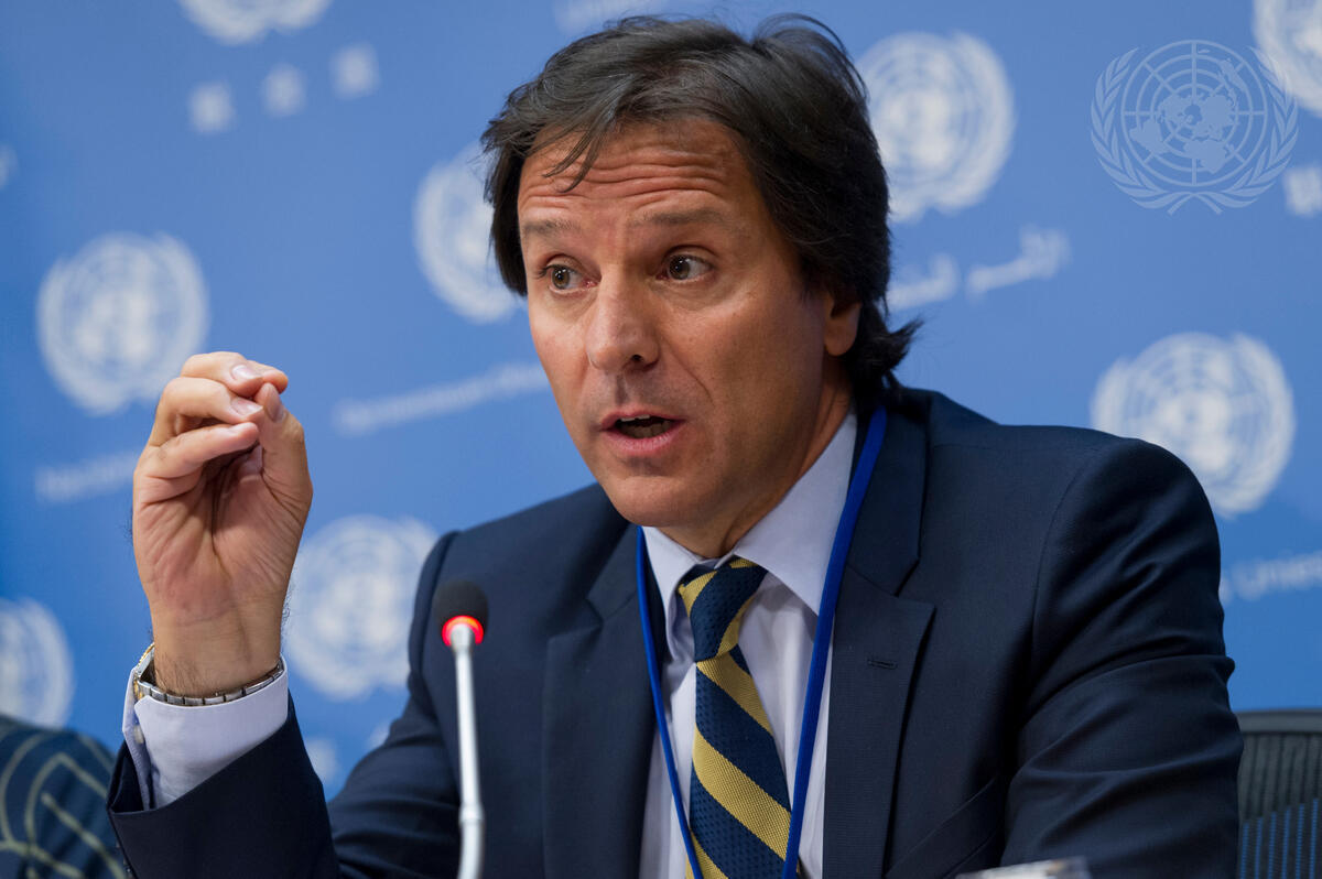 Lelio Marmora, Executive Director of Unitaid, briefs journalists on a recent agreement reached by governments and organizations working to combat HIV/AIDS with pharmaceutical companies that manufacture drugs used to treat HIV. This breakthrough agreement will reduce the price of these life-saving drugs, thus ensuring more widespread availability and more effective treatment.