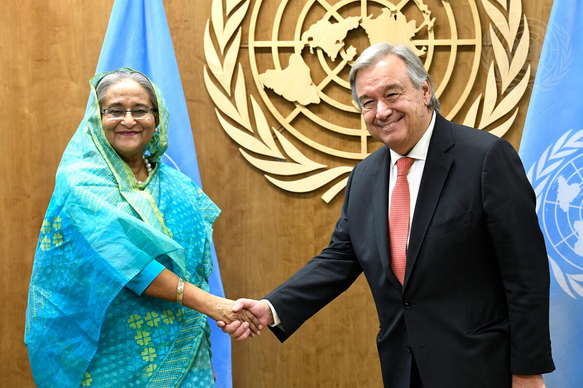Secretary-General António Guterres (right) meets with Sheikh Hasina, Prime Minister of the People’s Republic of Bangladesh.