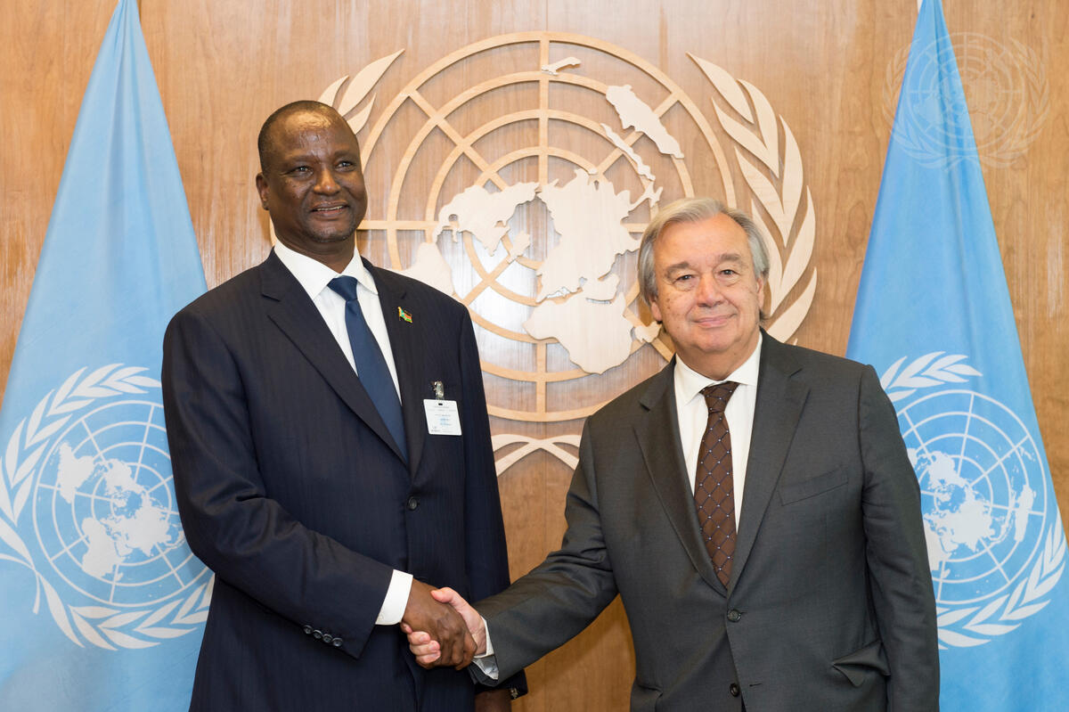 Secretary-General António Guterres (right) meets with Taban Deng Gai, First Vice President of the Republic of South Sudan.