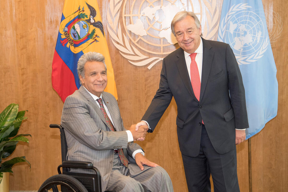 Secretary-General António Guterres (right) meets with Lenin Moreno Garcés, President of Ecuador.