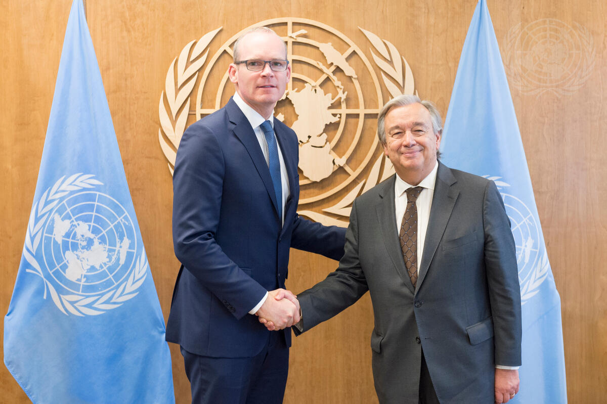 Secretary-General António Guterres (right) meets with Simon Coveney, Minister for Foreign Affairs and Trade of Ireland.