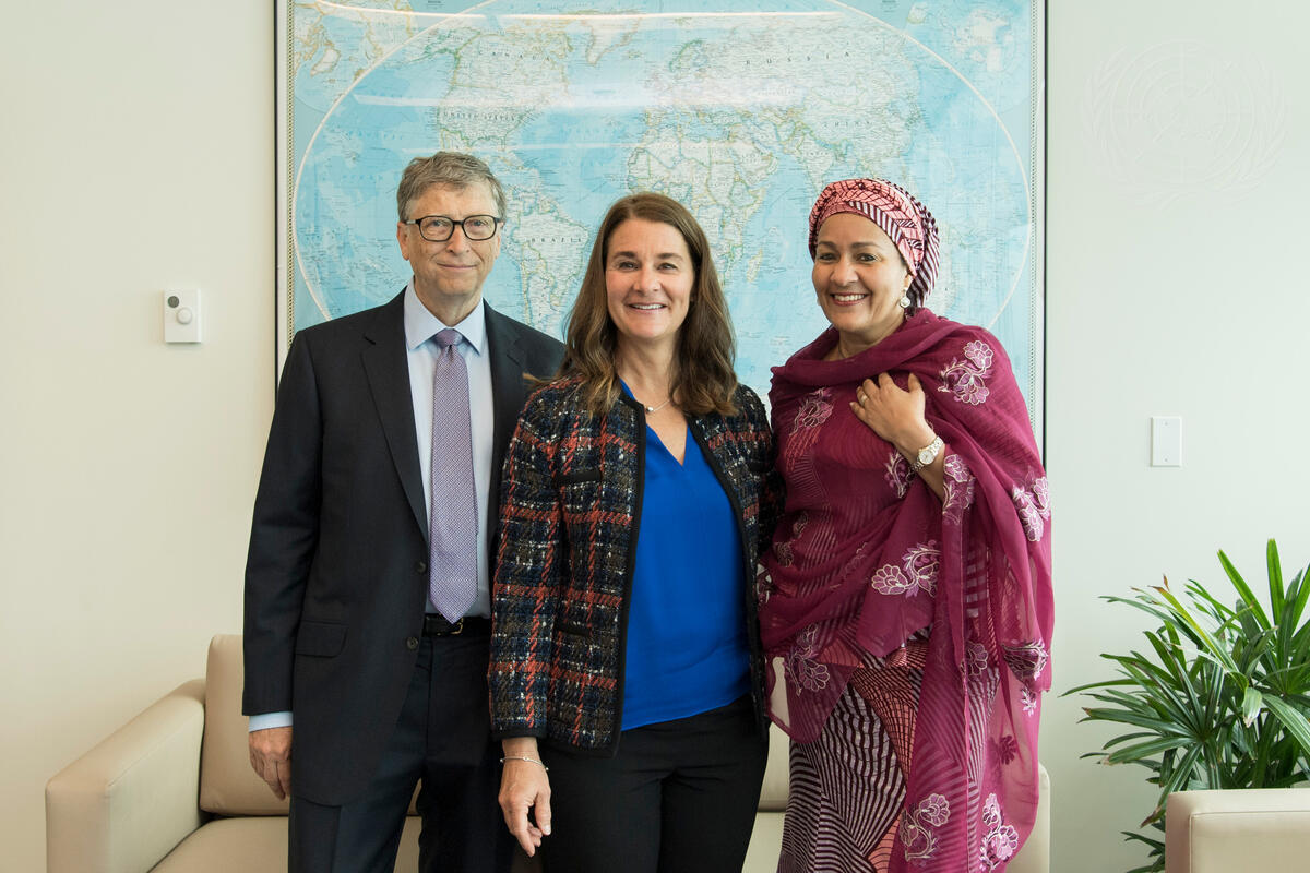 Deputy Secretary-General Amina Mohammed (right) meets with Bill and Melinda Gates.