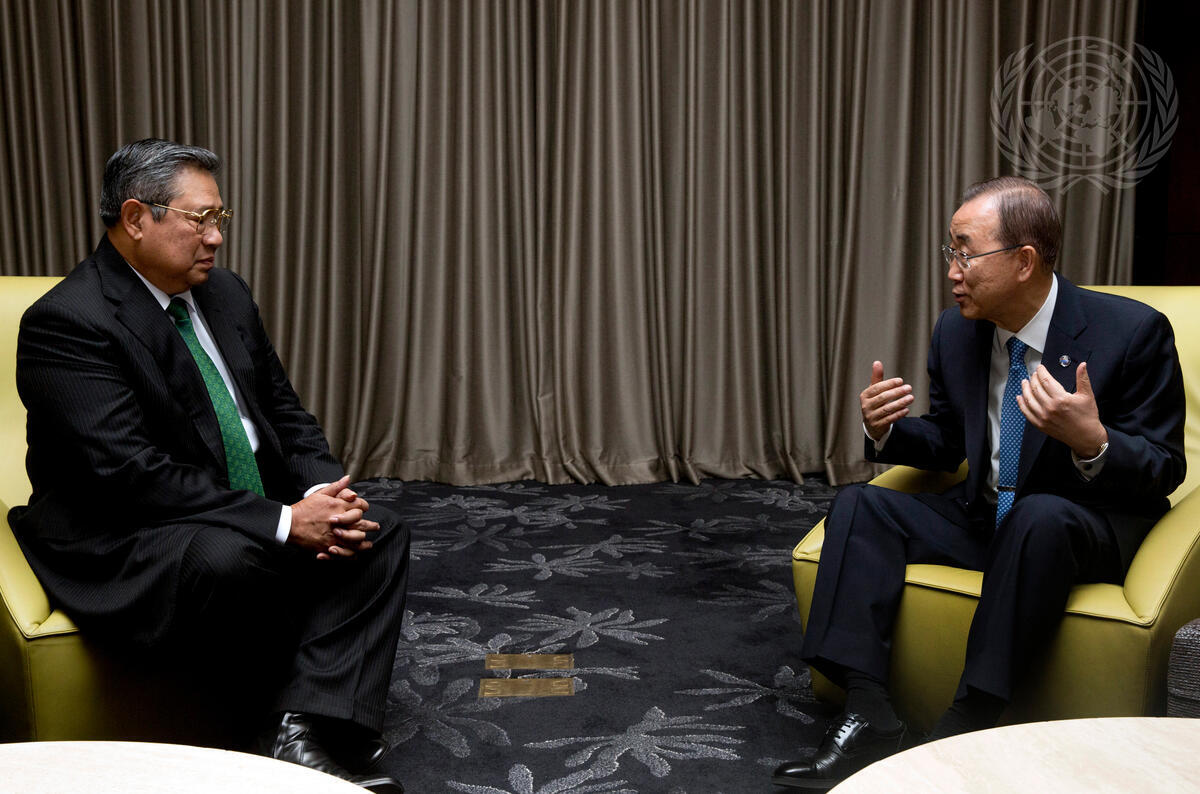 Secretary-General Ban Ki-moon (right) meets with Susilo Bambang Yudhoyono, former President of the Republic of Indonesia, in Seoul, republic of Korea.