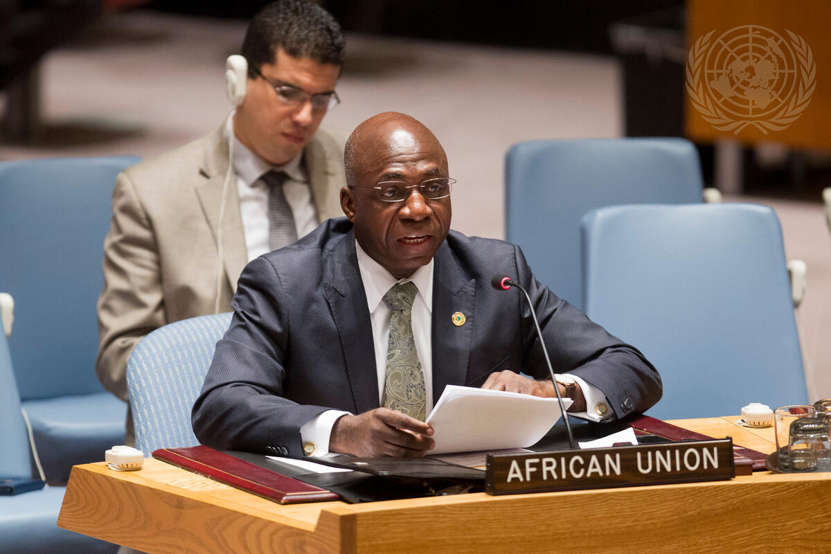 Téte António, Permanent Observer of the African Union to the UN, addresses the Security Council meeting on cooperation between the United Nations and regional and subregional organizations in maintaining international peace and security.