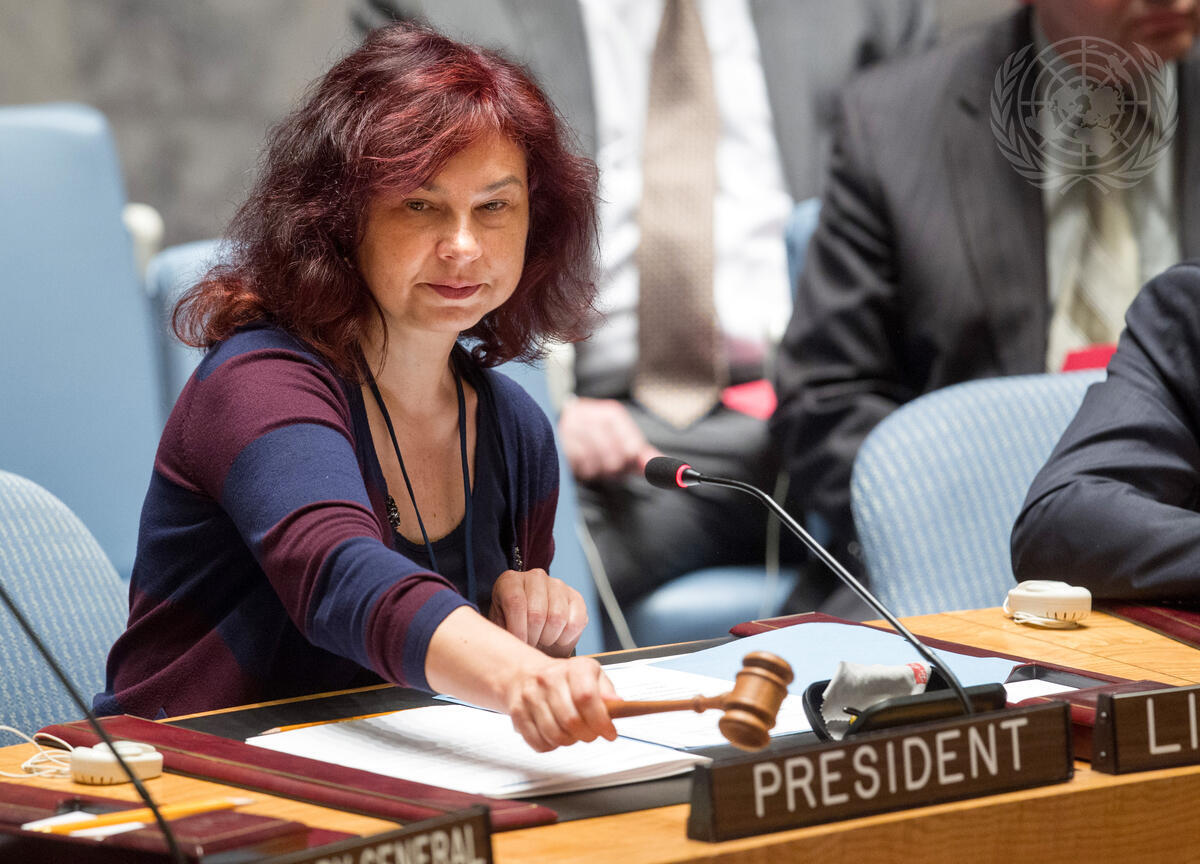Raimonda Murmokaite, Permanent Representative of Lithuania to the UN and President of the Security Council for May, chairs the Security Council meeting on cooperation between the United Nations and regional and subregional organizations in maintaining international peace and security.